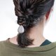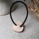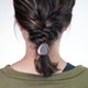 裏面には、ナチュラルなヌメ革を一つひとつ手作業で貼り合わせており、髪をまとめたときの後ろ側や頭皮に触れる部分も安心して使えます。髪型を問わず使いやすいサイズ(H31mm×W28mm)で、ウレタン素材のヘアゴムを採用しており、日常使いにも安心です。