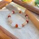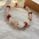 - 紅瑪瑙對女性氣色提升有所助益,安神也能顯膚白,是古代貴族女性最愛配戴的飾品材質之一,櫻花瑪瑙粉嫩的搭配其中,再加上可愛的愛心造型白幽靈,簡單又有好氣色。