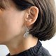 「織夢ピアス」はその軽さと柔軟性で長時間の装用でも快適です。どんな装いにも柔軟に馴染むデザインで、特にシンプルなスタイルやモノトーンの服装によく映えます。
