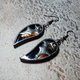 Mirror stained glass earrings with black bat image, samhain halloween witchcraft MYSTIQUE earrings. witch batearrings. Bat lover jewelry.