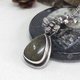 Rounded triangle shape Gold Sheen Obsidian gemstone on blackened sterling silver with a honeycomb cut on its back, and a bee buzzing on top.
