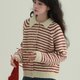 袖口/下襬精緻鎖邊,啞光紐扣呼應條紋色調