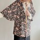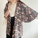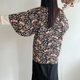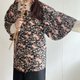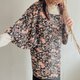 - 日本製和風花朵印花黑色古著道行和服外套