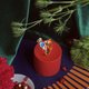 In the mood of forbidden love, in the secret oriental garden. Red, blue-white quirky flowers and the forbidden love between tiger and butterfly.
