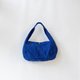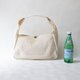 スナップボタンで閉じられる口と、側面の大きなポケットで機能的なうえに、カジュアル過ぎない上品なショルダーバッグ。バッグのマチから続くショルダー紐を持つと、ゆるい三角形に見える優しい印象のカバンです。