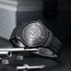 整體採用懸浮式指針結構,與中心渦輪刻紋結合,模擬飛碟起飛時的能量旋渦感。從正面觀賞,如同觀察一枚異星探測艙。從側面看,厚實卻優雅的錶殼線條,彷彿模擬飛行器進出次元通道的空氣動力學設計。