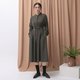 ▪ 左側上身V型褶片,右側下身V型百褶,在不對稱中找到視覺平衡。後修身剪接。