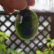墨玉有白玉底的墨玉與碧玉底的墨玉,這兩種不同品種的墨色玉,皆可稱為墨玉。本件是屬質地好的全墨色碧玉,玉質油潤、細膩無雜質,造型脫俗,非常適合當頸鏈配戴。