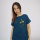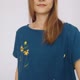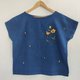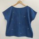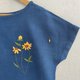 靛藍色船領短袖襯衫,正面襯衫上飾有獨特的手工刺繡亮黃色萬壽菊花,背面佈滿小花瓣。細節工藝如此美麗,海軍藍上的黃色非常出色。