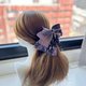 銀色點點紗蕾絲蝴蝶結相交夾香蕉夾仙女夾髮夾-紫灰色