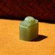 青嫩的玉質似春日新茶的清韻,在光下流轉著溫潤的柔光。規整的印身,線條利落如君子風骨,那一抹青綠,是山川靈氣的凝結,佩於襟前,便如攜了一段沉靜的古意,在歲月的箋頁上,鈐下屬於匠心的詩意印章。