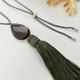 - 天然石のスモーキークオーツをあしらったこのネックレスは、大人のエレガンスを引き立てます。 スモーキークオーツのストーンがシンプルなお洋服に一際目を引くアクセントを添え、 胸元で揺れるタッセルが柔らかな動きを演出。