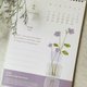 Wispers in Glass 瓶中花語,結合12朵每月代表花及12款玻璃花瓶的掛式月曆。溫暖的手繪風格,搭配細緻的插圖。色彩柔和,並搭配相近色系的花卉與花瓶,營造舒服的視覺感受與和諧調性。月曆可掛於牆面作為展示,增添不一樣的植感氛圍,展現空間新氣象。