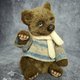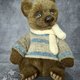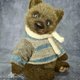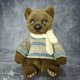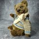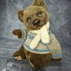 熊是由人造毛皮和塞满木屑的玩具和竹填料(软肚子)。 用于称量添加的金属颗粒。 使用teddy技术使用光盘和cotter销制成。 他有一双蓝色的玻璃眼睛. 眼睛的眼睑是真皮做的. 鼻子由自硬化橡皮泥制成,涂有丙烯酸涂料并涂漆。 这只熊染上了油画颜料. 我为泰迪熊织了一件毛衣和一条围巾.