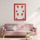 看到這幅畫,最先吸引眼球的是數朵鮮豔的紅花,它們被綠色長葉及青色小葉片環繞,周圍則充斥著小紅花點綴色彩。綜觀整個畫面,花兒及葉片彼此纏繞在一起,表現出多元曲線的層次感,William Morris威廉‧莫里斯巧妙的構圖安排,讓畫作看來*和諧且具有對稱的美感*,整體透著清新淡雅的氛圍。直到今日,還是能在各大品牌看到許多*William Morris威廉‧莫里斯*的創作,與之結合出新的火花。