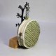 落ち着いた緑色のシンプルな絞り染めの着物をリメイクして作りました。