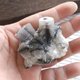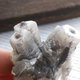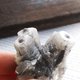 --這顆是二次結晶方解石,第一次結晶的部位是尖牙狀黑色(已被二次結晶包裹在裡面),二次結晶是外層霧白色六角柱狀