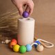 Sensory wooden educational puzzles for children can be played in abacus, fingering rainbow beads on a string. With the best Montessori learning toy for newborns with color sorting, the baby can play both independently and together with mom and dad. Turning and shaking the barrel like a wooden maracas rattle, you can hear the attractive tapping sounds of wooden beads. Lacing toy Montessori helps girls and boys in exploring the world through tactile sensations.