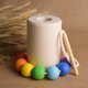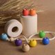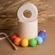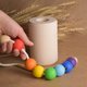 The meaning of the game of wooden rainbow handmade educational toys for children, girls and boys is for the kid to remove the wooden balls from the lacing and drop them into the hole of the lid of the wooden barrel.