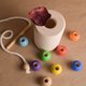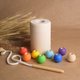 Lacing toy toddlers for children are eight bright wooden balls that need to be strung on a cotton cord with a wooden stick. Wooden lacing beads for children are painted in the main colors of the rainbow, so with an older kid, the game can be varied by memorizing their names. Very soon, the child himself will be able not only to string balls on a string, but also to name all the colors!