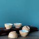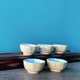 段泥胎施白釉杯,內白釉已產生開片紋路,杯身刻繪花卉紋,款識則為空石主人仿刻。