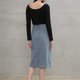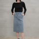 實穿百搭的修身牛仔裙,可搭配合身T-shirt或短版個性上衣與短靴,散發硬地風格獨有的率性魅力。