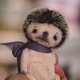 Viscose, mohair, glass eyes, oil paints, soft pastel.