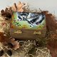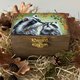 Fairy gift for an animal lover. Two lovely raccoons - mother and baby - are looking at each other so gently. Inside the box, there is a tiny painting of mushrooms. The wooden box has a convenient lock not to let things fall out. Suitable for storage of jewelry or some little memorable things.