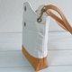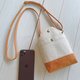 上部分にはキナリ、下部分とストラップにはキャメルを使い