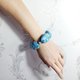 呼應藍磷灰石的**多層次藍色調**,鍊身飾以藍色調琺瑯多寶(**六字真言-智慧、蓮花-清淨、球-圓滿**),使整體的藍活潑趣味,上手若**巨型花朵在手腕綻放**,大方美麗,亦是喜愛藍磷灰石(甚或藍色調寶石)的藏友們值得收藏、把玩的**巨**作^^