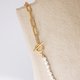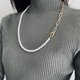 丸みのあるオーバル形デザインチェーンと貝パールを組み合わせたネックレス。