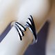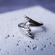 上下に開いた羽のような3本のデザインが特徴的なリング