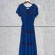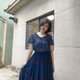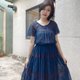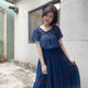 沈浸深藍海洋刺繡拼接 透膚雪紡紗蛋糕裙洋裝連身裙