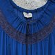 領口抽繩、上身透膚設計、下擺雪紡紗拼接蛋糕裙 沈浸深藍海洋刺繡拼接 透膚雪紡紗蛋糕裙洋裝連身裙