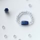 Septetone原創明幻系列ー【蒼】青金石能量水晶戒指,深藍色的青金石配上灰銀色米珠,呈現出一種淡雅和冷靜的感覺,是古老智慧與高雅氣息的完美結合。能量溫潤而堅韌,助你在喧囂的世界中找到內心的平靜和安寧,平衡情緒。