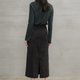 剪裁簡約洗鍊的修身長裙,選用精緻溫潤的仿麂皮面料,表面微絨毛的觸感舒適卻不失挺拔。沉穩內斂的色調在寒冷秋冬時節,默默展現長裙裝扮的大方優雅。
