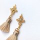 金色菱型通花,施華洛小水晶,杏色貴氣流鬚