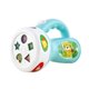 按壓把手上的星星按鍵,可以產生燈光與5首音樂,引起寶寶注意和引發好奇心。轉動轉盤,不同形狀對應不同動物,會發出不同叫聲喔!