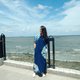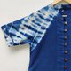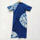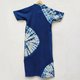Long dress indigo tie dye big circle pattern on shoulder, on the side and bottom dress.
