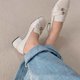 **鞋面** 白色小羊皮+珍珠白真絲緞面