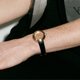 -材質:玫瑰金鍍不鏽鋼錶殼與真皮錶帶、藍寶石玻璃