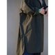 中長款,下擺的不規則錯落,是最愛的狀態,開衩,弧線型的。開著門襟,一排紐扣到底,上端連著帽子,開著門襟穿,或者隨意系一兩粒,或者全繫上,這可都是好看的樣子,完全無死角。袖子是寬松的,有一點肥大的,但面料的高質感讓它一點兒也不鬆懈,保持好的廓形,也同時親膚。袖子有意長一點,一定要長一點,不長就不好看,袖口再外翻幾折。
