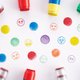 印章及印泥直徑為2.7公分,6種顏色的印泥,6款表情印章,共48件。
