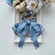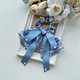 使用美國廠牌的棉布製作髮圈、加上帶有釘珠的長尾蝴蝶結和精緻蕾絲,氣質浪漫,無論上班或休閒聚會都適合配戴。