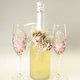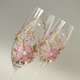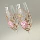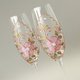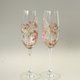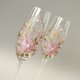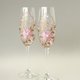 - Set of 2 Champagne Glasses hand-painted and decorated. Pink and green floral design, Swarovski Crystals and crystal rhinestones decoration. One of a kind champagne glasses, READY to SHIP!