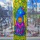 这种彩色玻璃suncatcher与有机玻璃上的丙烯酸涂料创建。