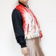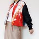 ヴィンテージ着物を使ったブルゾン レッド 1点物です!「送料無料」着物リメイク 鮮やかな晴れ着が世界に1枚だけのブルゾンになりました 香港在住の日本人デザイナーが1点1点丁寧にてづくりしております。