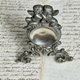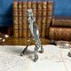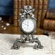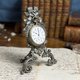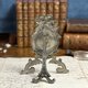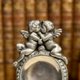 法國古董浪漫天使/丘比特雕飾、錫製懷錶架,約來自十九世紀末期,歐洲工藝細緻鑄造、巴洛克風格渦卷底座,錫金屬光澤古樸優雅,是獨一無二的法式浪漫家居收納與裝飾。背面腳架為固定形狀,無法收合。