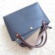◎しなやかなダークネイビーのシュリンクレザーにワインカラーのスムースレザーのハンドルを合わせ落ち着いた雰囲気に仕上げました♪