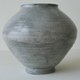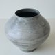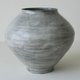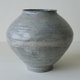 鐵質豐富的土胚表面,用棕掃把刷上白色泥漿,簡單隨意的筆觸、不均勻的刷痕,使得土的原色與泥漿之間的對比有種趣味,並使用灰類調製釉藥,經過還原燒成後,形成藍灰色的透明釉,透明釉色隱約透出陶土、泥漿的面貌。